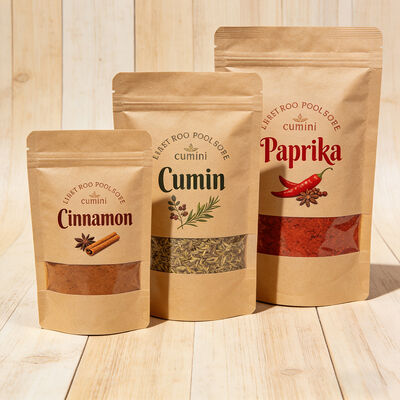 Premium biodegradable kraft paper pouches with convenient ziplock resealable closure. Ideal for coffee, nuts, snacks, and various food products. Available for cross-border wholesale with custom printing options.